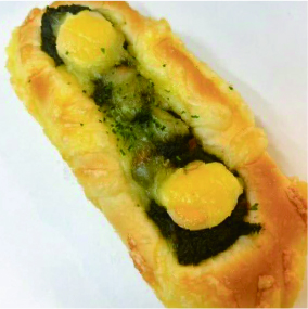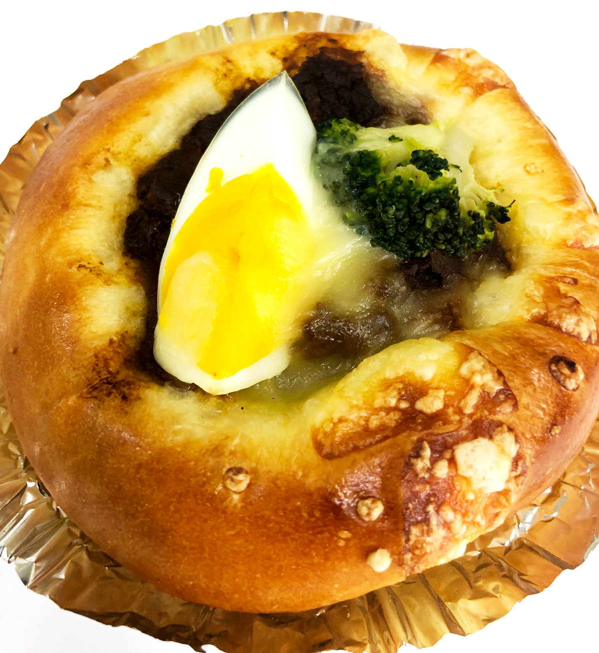 イタリア風ミートソースとうずらの卵を包んだパンです。
