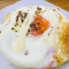 パリパリのフランスパンに、香ばしいチーズとベーコンを盛りつけました。ほんのりスパイシーな味わいがクセになる美味しさ。