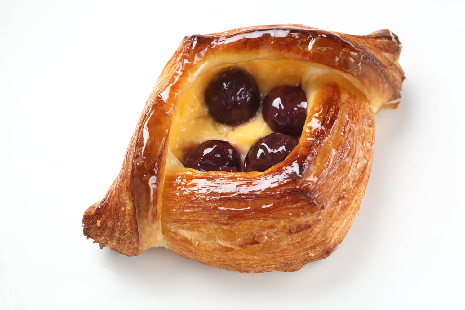 ダークチェリーの酸味とカスタードの甘味が絶妙にマッチした、大人のスイーツパン。ぜひともご賞味ください。