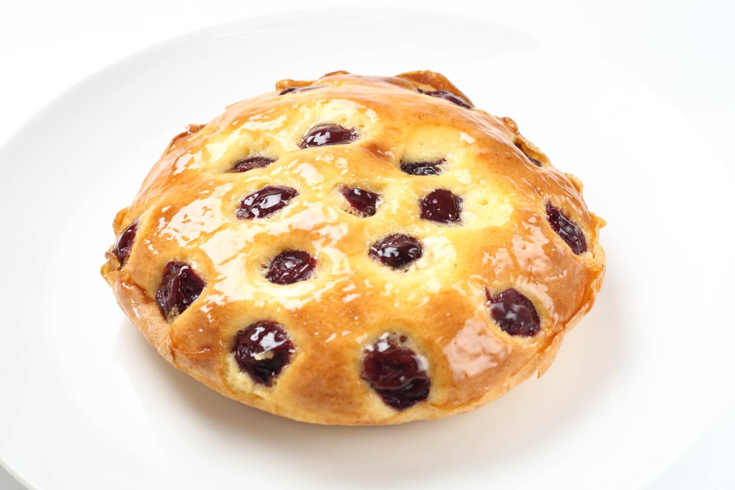ダークチェリーをぎっしり詰めて焼き上げた、ケーキ風のスイーツパンです。ジューシーなチェリーの食感をお楽しみください。