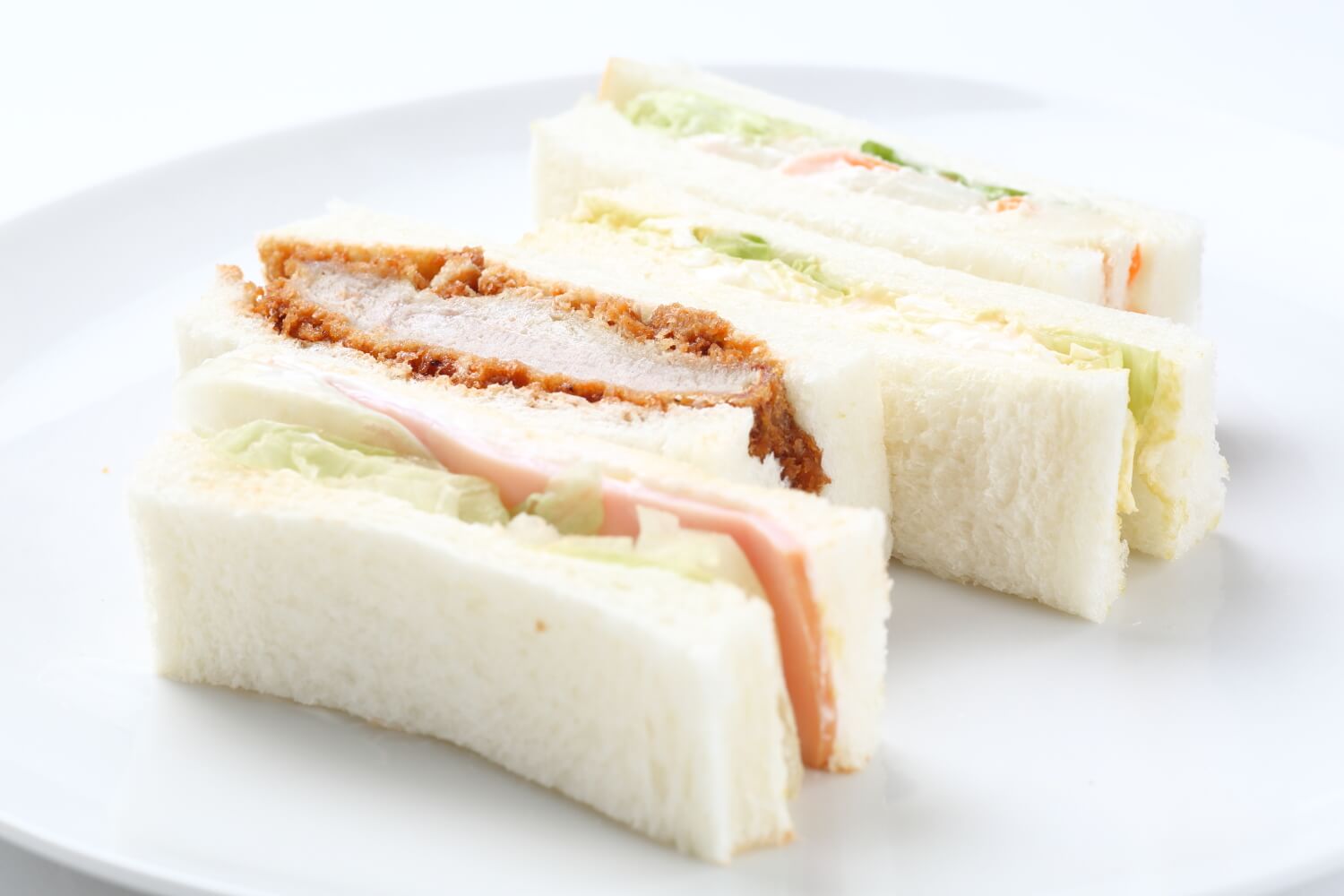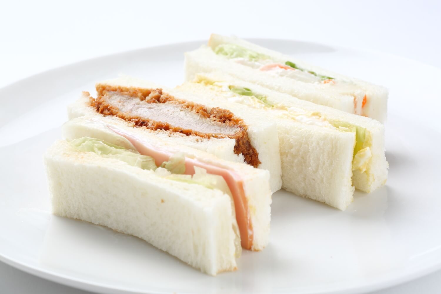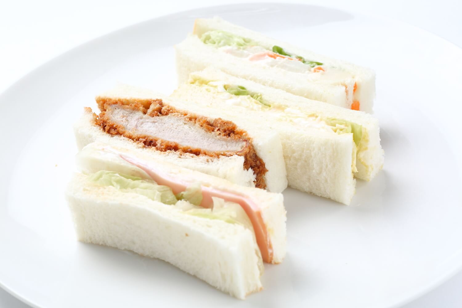 ボリューミーなヒレカツサンドと、野菜サンドの詰め合わせ。ふわふわの食パンと具材の味をお楽しみください。