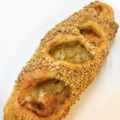 くちどけの良いツナサラダをフランスパンに包み旨味をとじこめたパンです。