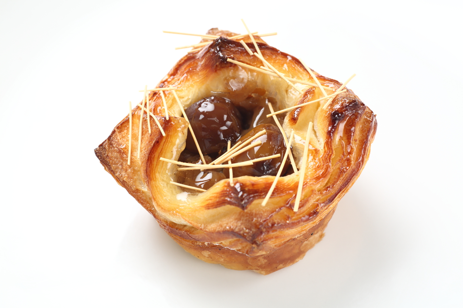 デニッシュの真ん中に、香ばしいほくほくマロンをぎっしり詰めました。デニッシュのサクサク食感とマロンの豊かな風味をお楽しみください。